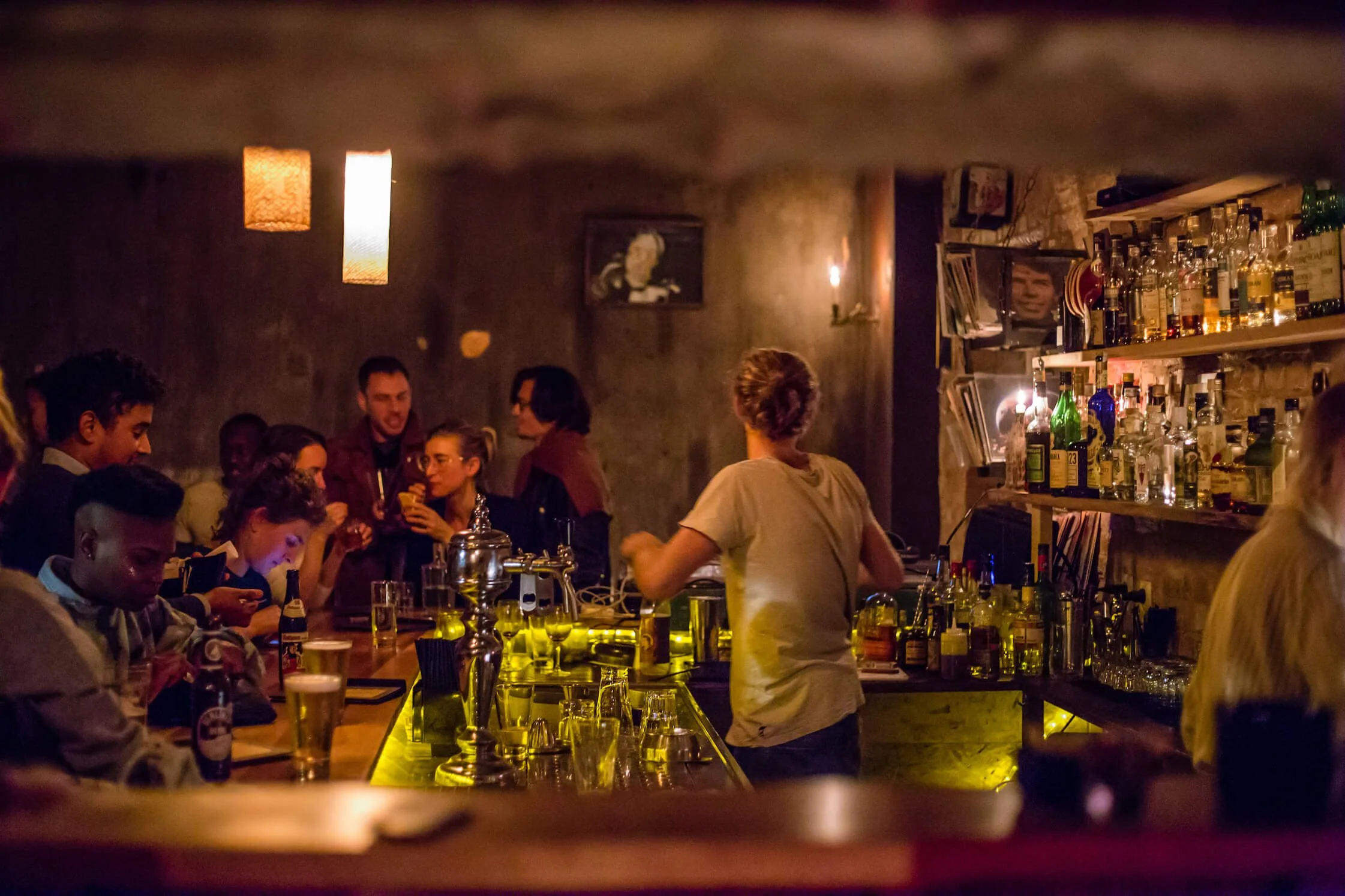 On the south side of the city, in the artsy Friedrichshain-Kreuzberg area, Madonna Bar has become a nocturnal reference point for youthful post-wall Berlin. Candlelit, with orders written down on pieces of paper on the counter, and Renaissance-looking paintings on the wall, its chilled-out “living room” atmosphere is made for unwinding with friends while listening to live music. Raise your eyes from the Madonna statue on the counter to the ceiling, and gawp at the breathtaking and highly detailed painting by Berlin artist Volker Pankrath, that still holds the regulars in animated discussion.