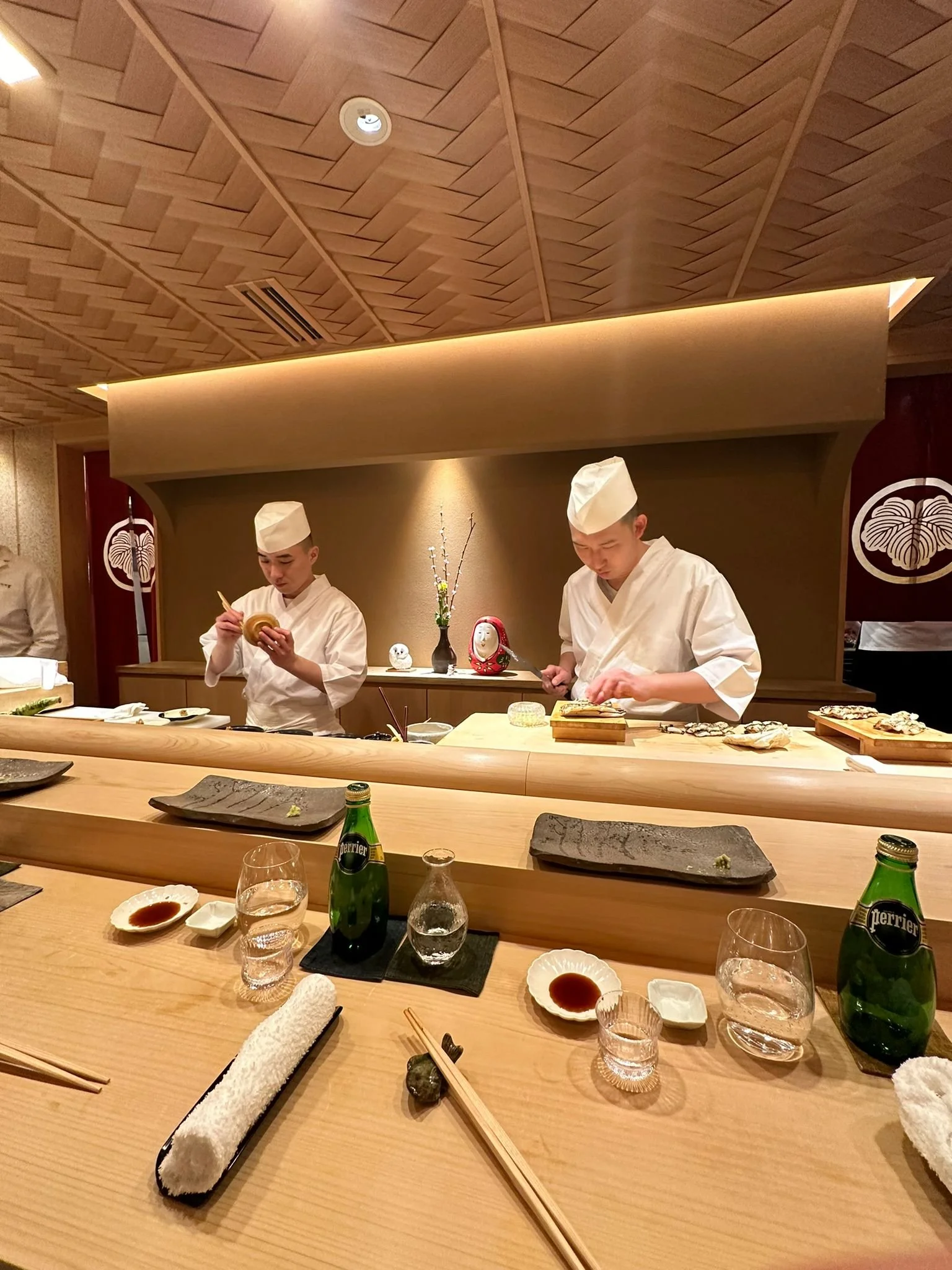 Enjoying an omakase sushi dinner at Ishiyama, with Arsenal fan and host Takayoshi on the right