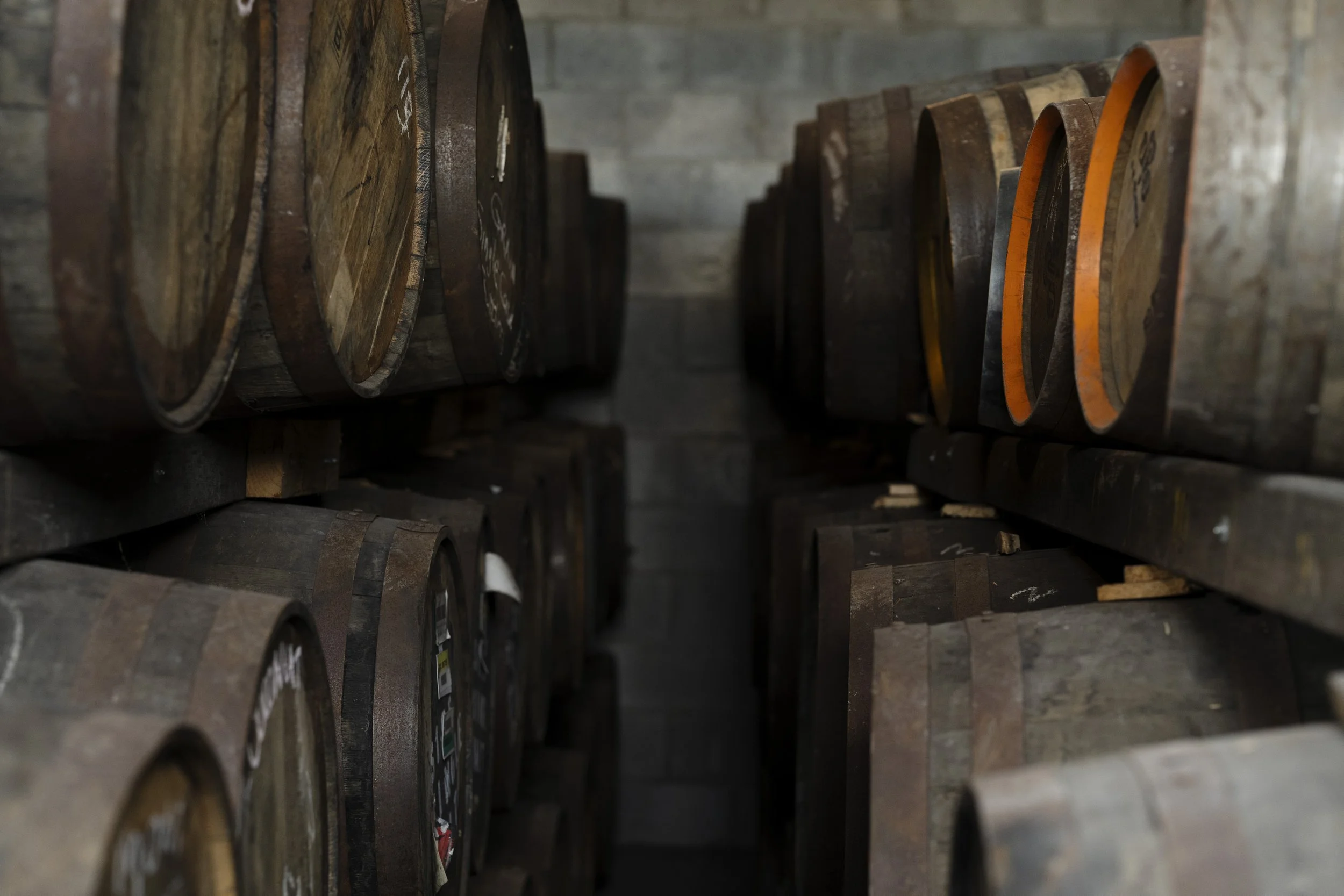 ‘Entering the barn, we’re met with rows of huge barrels the same cool grey as the morning sky. Each one is fat and happy, lying on its side while the whiskey inside ponders what it might become’