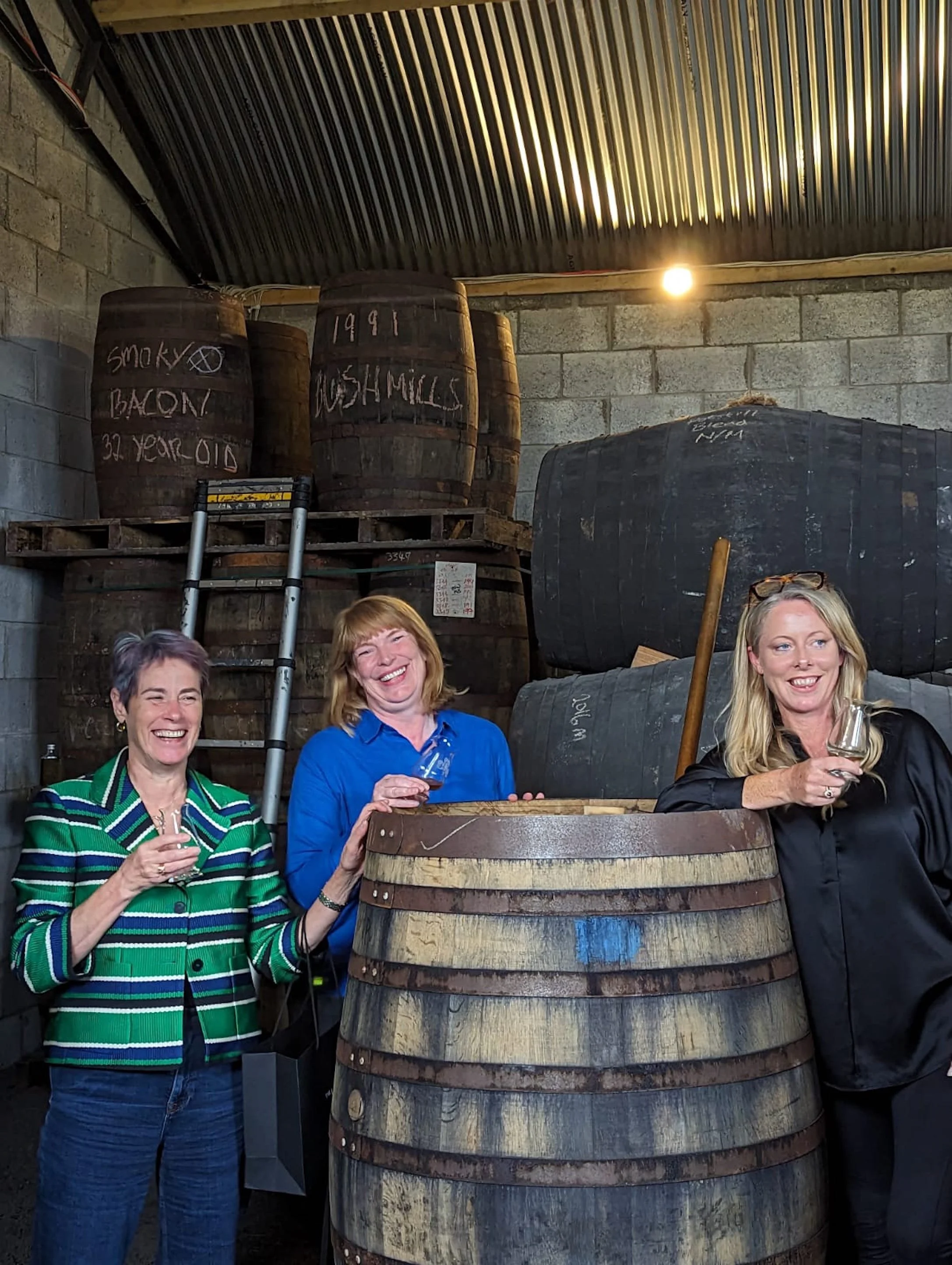 As a master whiskey bonder, McGuane marries different vintages together to create unique blends. That’s why her rackhouse is filled with barrels from all over Ireland. As she samples different vintages from her library for us to taste, two other women gather around the great barrels, joking with each other as McGuane’s Collie dog leaps onto the top of an upturned cask. It must be over a metre tall.