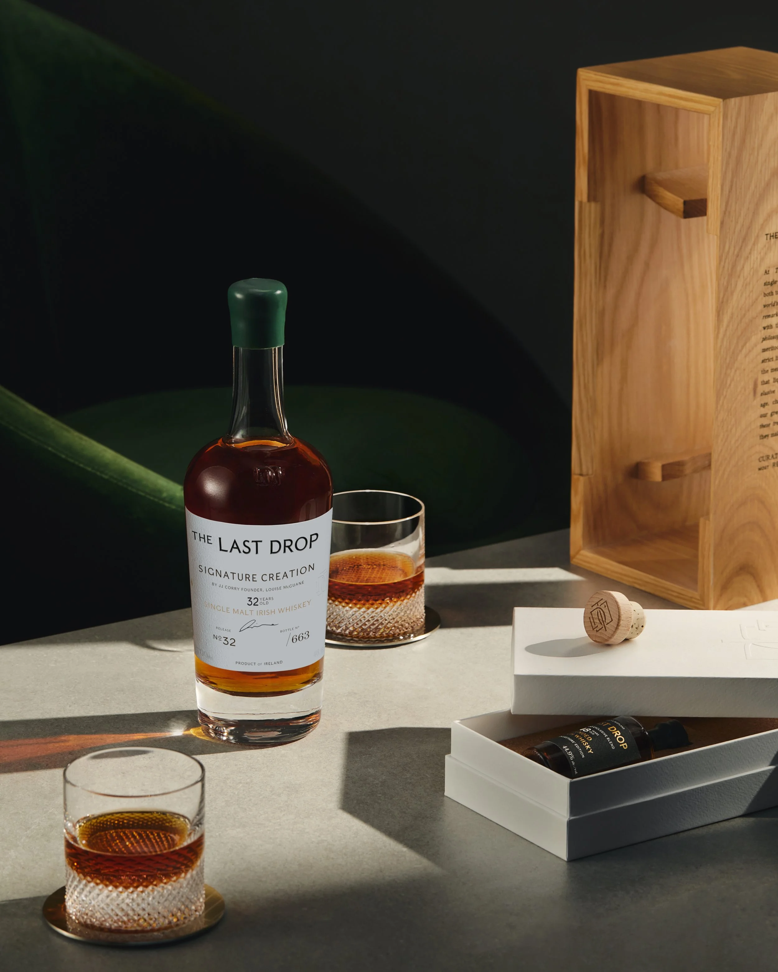 No. 32: The Last Drop is a 32-year-old Single Malt Irish Whiskey created by Louise McGuane. Bottled at 46.4% ABV, it is limited to 663 bottles available worldwide. The suggested retail price in the UK is £2,250 including VAT (700ml + 50ml miniature).