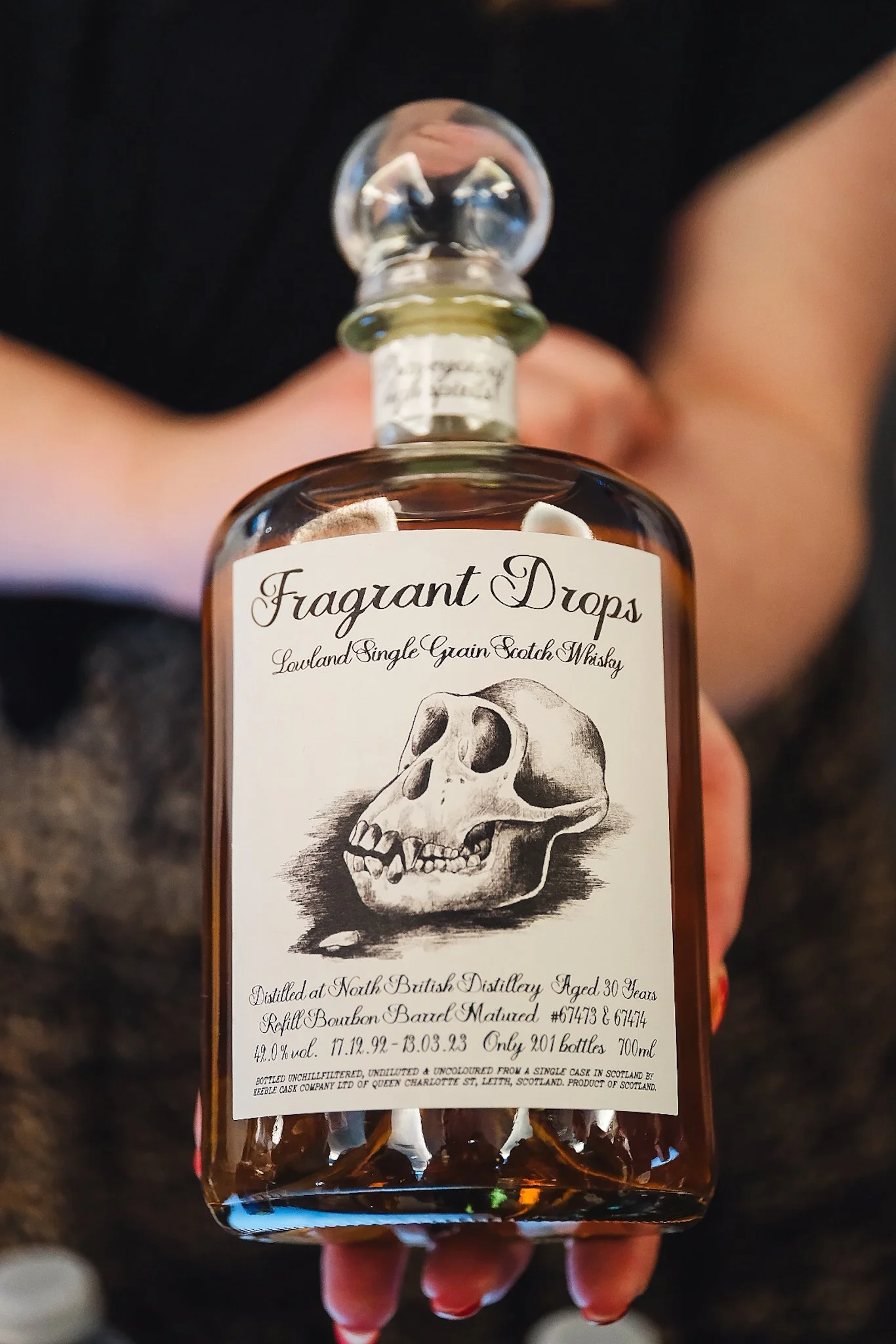 Unlike the more famous Single Malt, grain whisky mostly goes into blends. The malt you can smell stepping off the train will likely end up in a glass of Johnnie Walker or Famous Grouse. However, it’s possible to find some brilliant independent bottlings of North British Single Grain whisky, often offering incredibly good value for age and quality. Enter Fragrant Drops, an Edinburgh-based independent bottler launched in 2022 and already getting rave reviews. Their perfume-like bottles evoke an apothecary or perfumery, with a round body and decorative stopper and gothic illustrations (this one features a macabre skull) making it a classy addition to whisky shelves. Inside, the exceptional liquid does the talking — their take on North British is a sweet, fresh and versatile whisky. Drink it neat, or mix it to make a fruity cocktail.