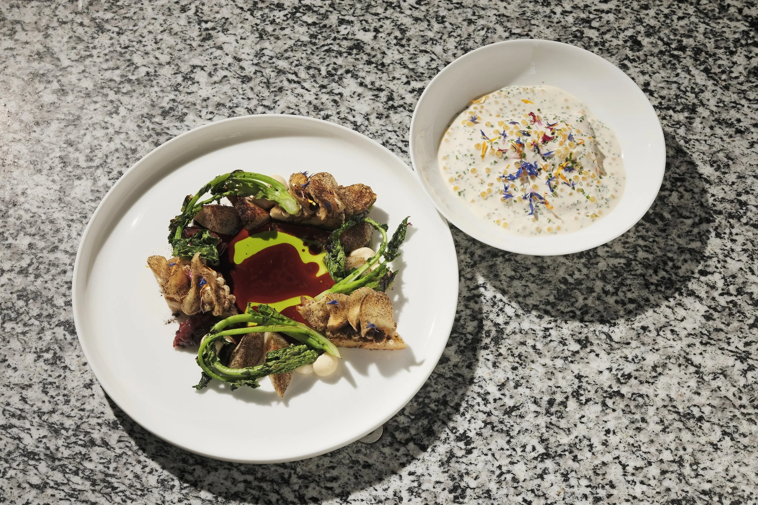 Many more of those secret Swiss wines follow, each one carefully paired with a dish from the Omnia’s five-course tasting menu – an elegant, quietly ambitious affair devised by chef André Kneubühler. The dining room itself is Alpine-chic, all brushed oak, soft steel, softer rugs and a capacious fire that flickers beneath walls of blond timber and stone.