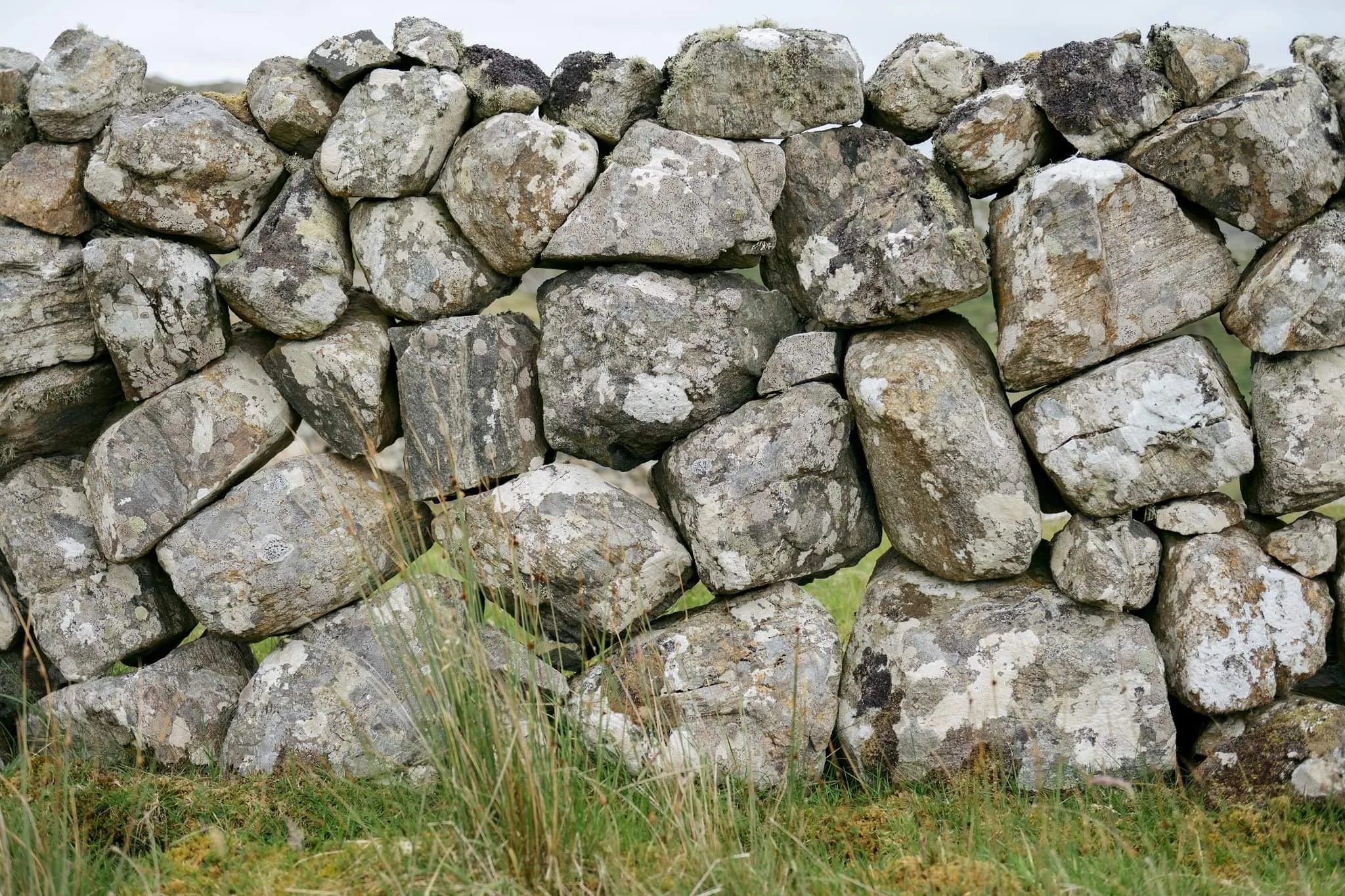 Despite the two-thousand years between us, not a lot of interpretation was necessary because this craft has stayed true to its ancient roots, and today, any drystone structure can still be built using only traditional techniques, the very same that were used to build Clachtoll Broch thousands of years ago. These days, we have access to tools that really help speed up the building process. Big tools, like diggers to clear earth or move stones that weigh many, many tonnes, and small tools like carbide chisels or hammers that make shaping stone quick and precise. No matter the tools that are used, every stone still goes into the wall by hand, each piece of hearting is placed with intent, stones into the wall length ways, one over two and two over one. Just like our ancestors did.