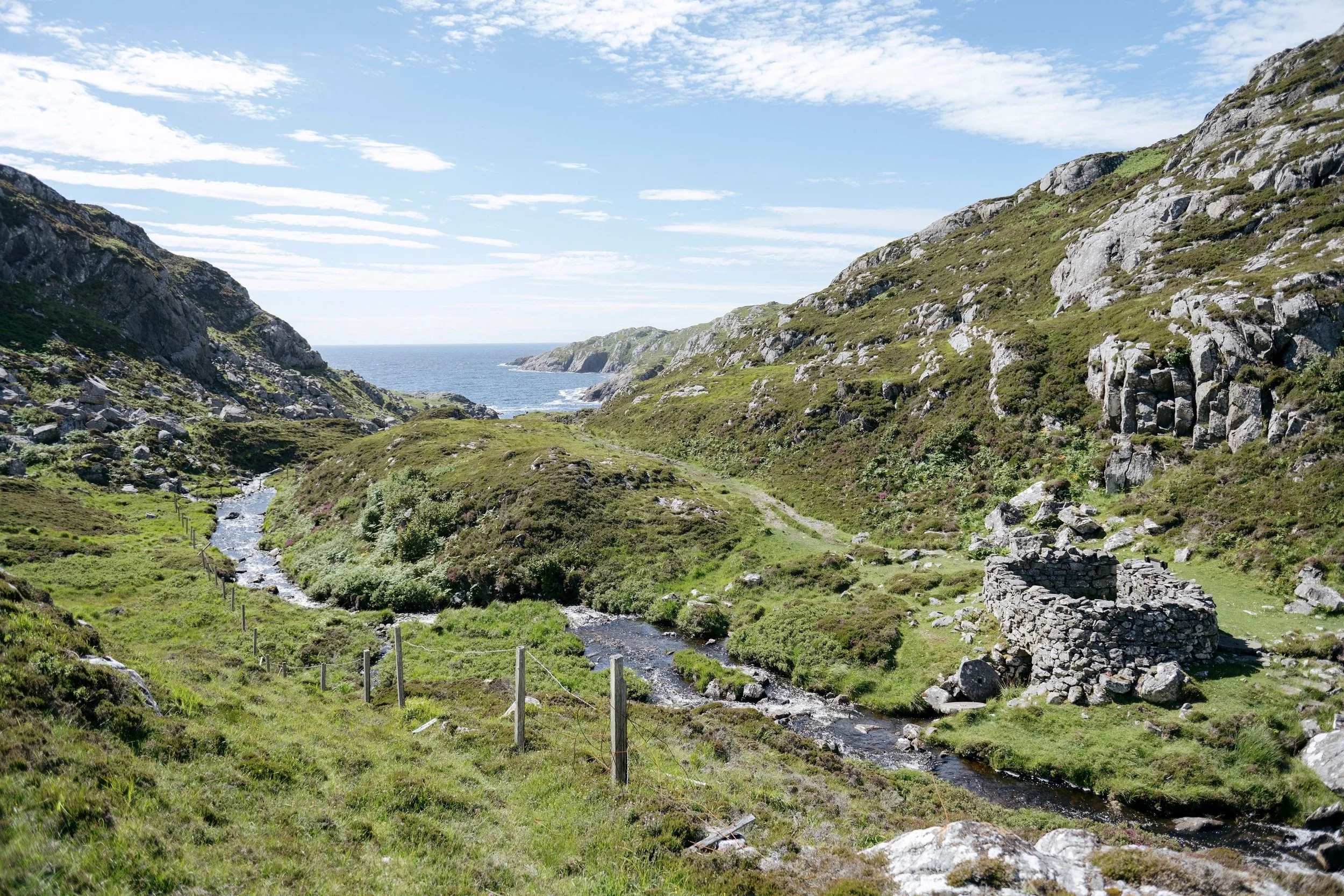 Making the most of what the land could provide, the stone for these homes would have been pulled from the ground beneath them. Thousands of stones in each structure, some huge, but each placed by hand. Looking at the stones in the still-standing corner of the gable end, I see what they saw in each one. I would have used these stones too. Some sections are low enough to see the two sides of the wall coming together and I reach down to pick up some hearting. Below is a large void, and I wonder if the hearting has been removed by curious hands like mine, or if they didn’t have enough to begin with. Maybe that’s why this section of wall has fallen further than others. I smile to myself. I feel as if I am speaking some ancient language, and I suppose I am. This is the magic of drystone, not just in how a home can be created from piles of unwilling stone, but in its deep and tangible connection to the past.